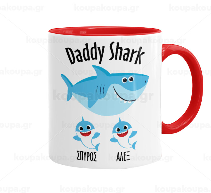 Daddy Shark (με ονόματα παιδικά), Mug colored red, ceramic, 330ml