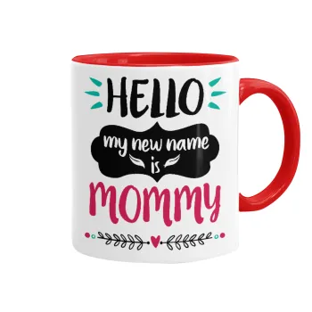 Hello, my new name is Mommy, Mug colored red, ceramic, 330ml