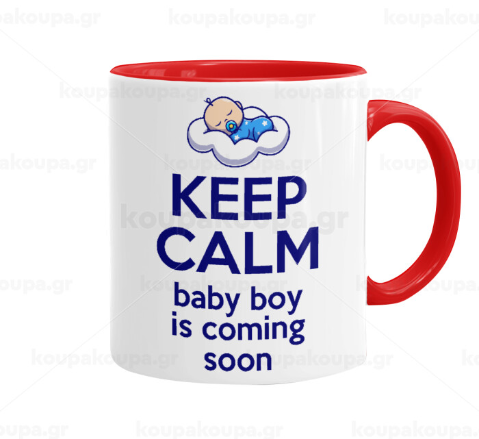 KEEP CALM baby boy is coming soon!!!, Mug colored red, ceramic, 330ml