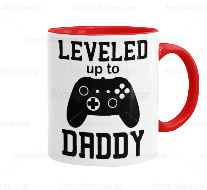 Leveled to Daddy, Mug colored red, ceramic, 330ml