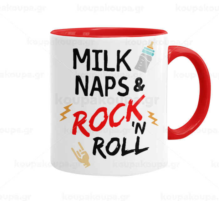 milk naps and Rock n' Roll, Mug colored red, ceramic, 330ml