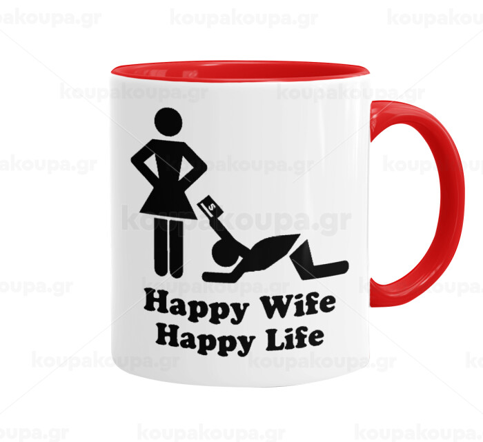 Happy Wife, Happy Life, Mug colored red, ceramic, 330ml