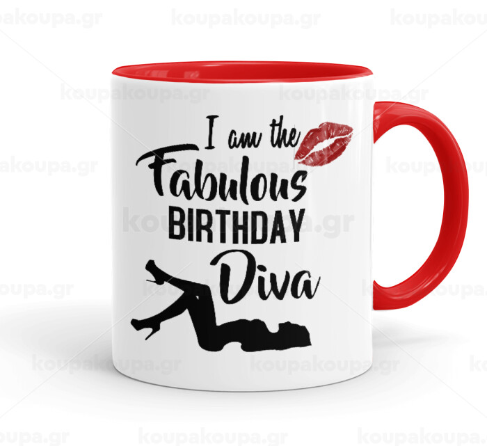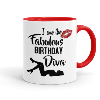 I am the fabulous Birthday Diva, Mug colored red, ceramic, 330ml