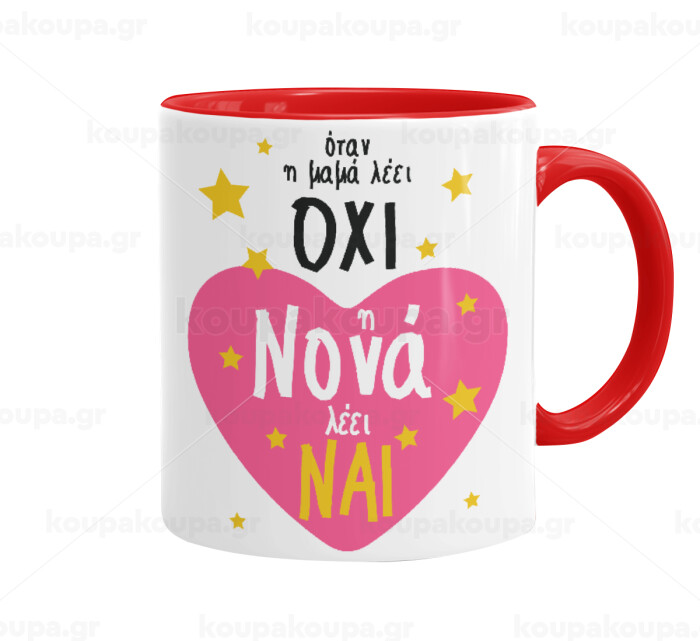 Η νονά λέει ναι!!!, Mug colored red, ceramic, 330ml