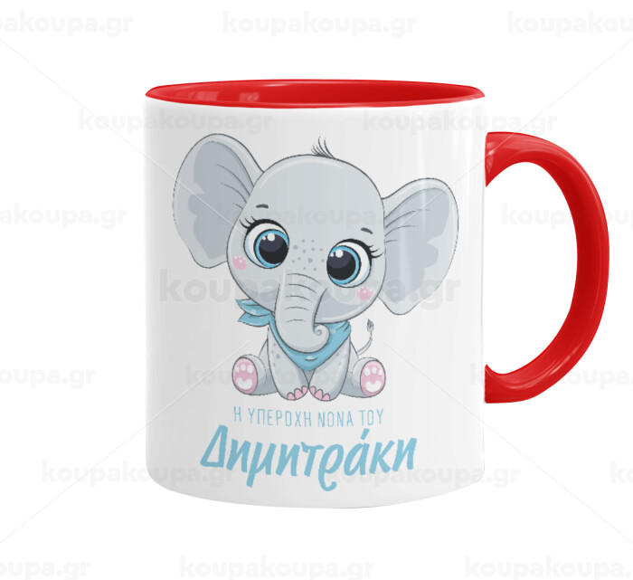 Η νονά μου, ελεφαντάκι γαλάζιο, Mug colored red, ceramic, 330ml