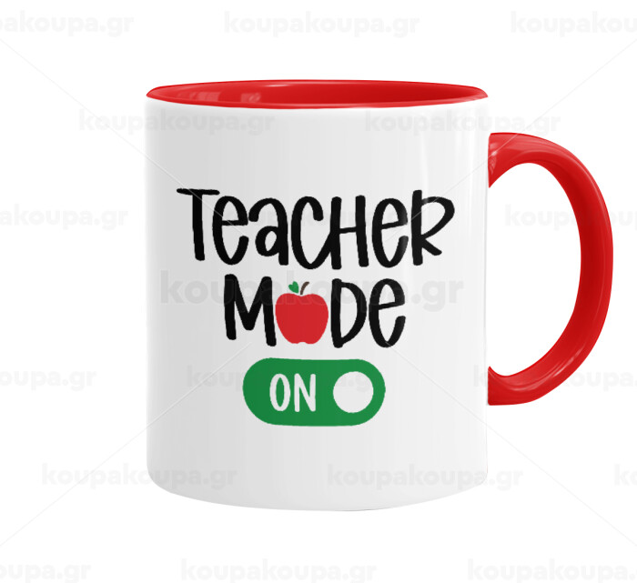 Teacher mode ON, Mug colored red, ceramic, 330ml