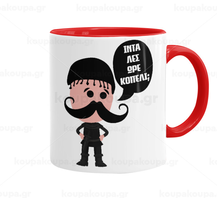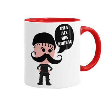 Κρητικός "Ίντα λες ωρέ κοπέλι", Mug colored red, ceramic, 330ml