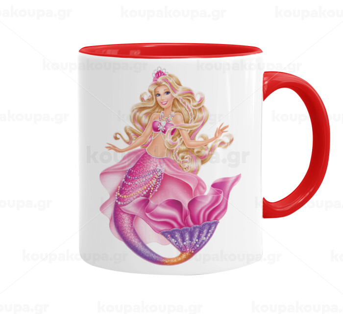 Barbie mermaid , Mug colored red, ceramic, 330ml