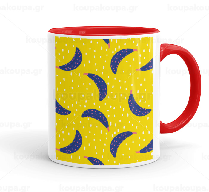 Yellow seamless with blue bananas, Mug colored red, ceramic, 330ml