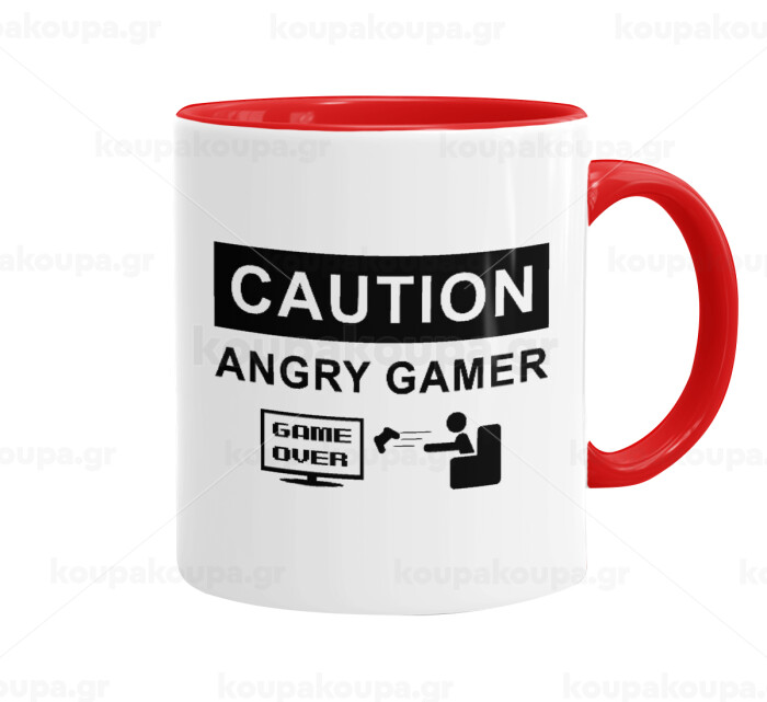 Caution, angry gamer!, Mug colored red, ceramic, 330ml