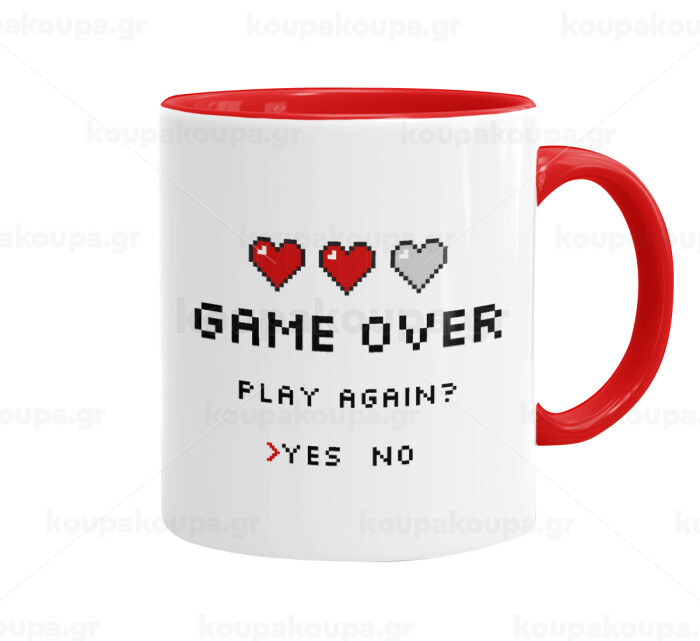 GAME OVER, Play again? YES - NO, Mug colored red, ceramic, 330ml