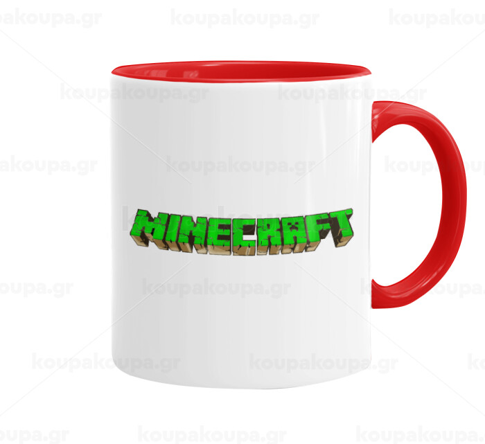 Minecraft logo green, Mug colored red, ceramic, 330ml