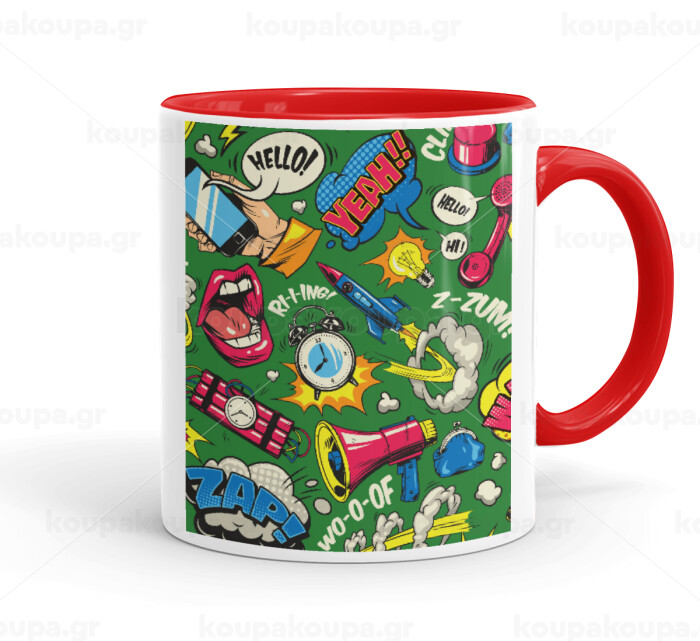 Pop art colorful seamless, Mug colored red, ceramic, 330ml