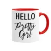 Hello pretty girl, Mug colored red, ceramic, 330ml