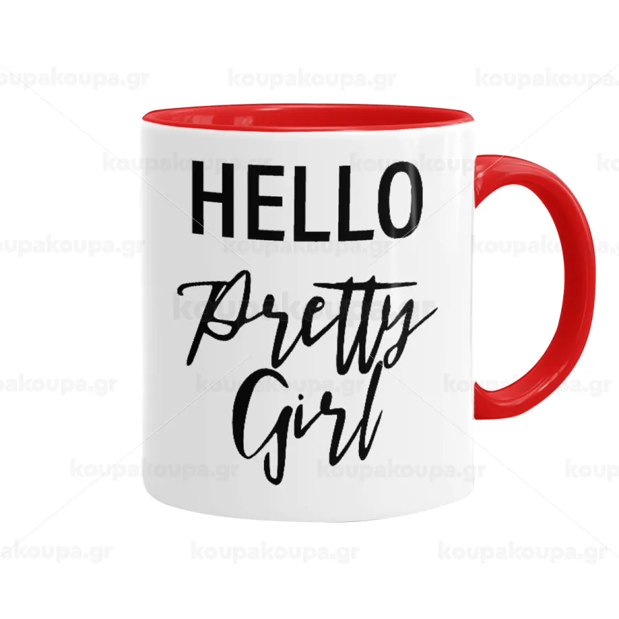 Hello pretty girl, Mug colored red, ceramic, 330ml