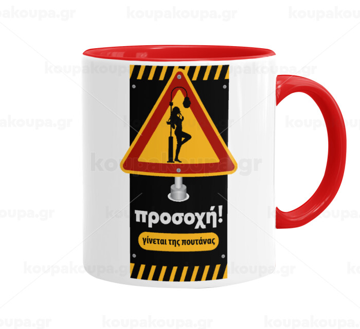 Προσοχή Γίνεται της πουτ.νας, Mug colored red, ceramic, 330ml