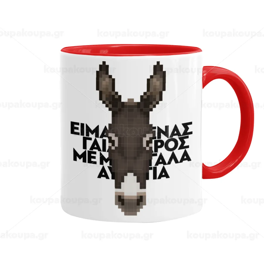 Είμαι ένας γάιδαρος με μεγάλα αυτιά., Mug colored red, ceramic, 330ml