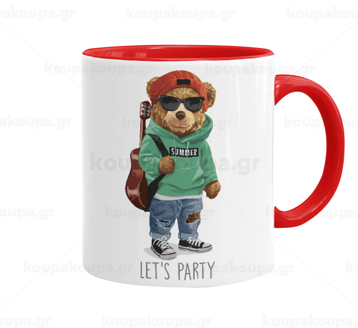 Let's Party Bear, Mug colored red, ceramic, 330ml