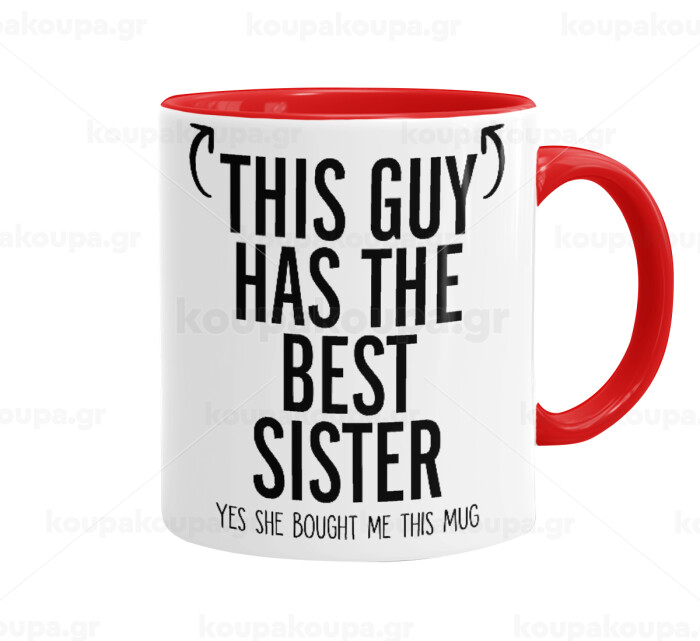 This guy has the best Sister, Mug colored red, ceramic, 330ml