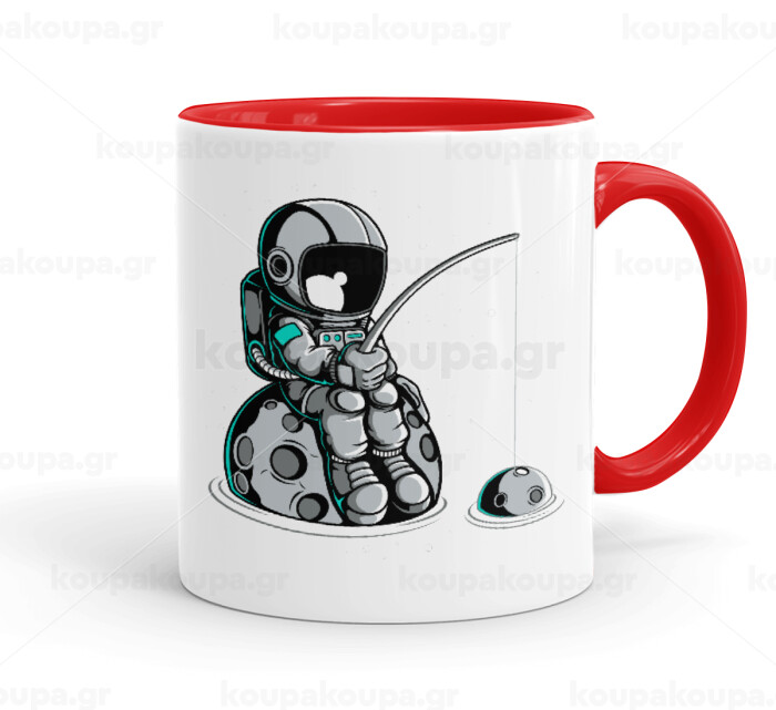 Little astronaut fishing, Mug colored red, ceramic, 330ml