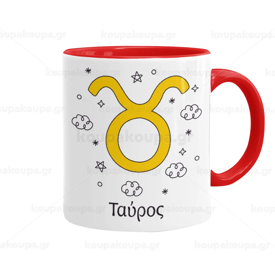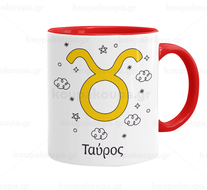 Ζώδια Ταύρος, Mug colored red, ceramic, 330ml