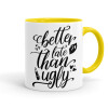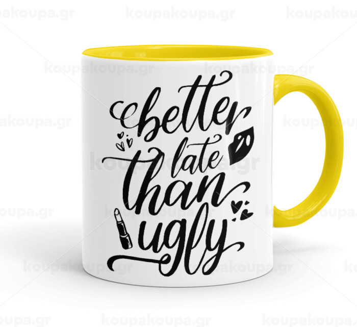 Better late than ugly, Mug colored yellow, ceramic, 330ml