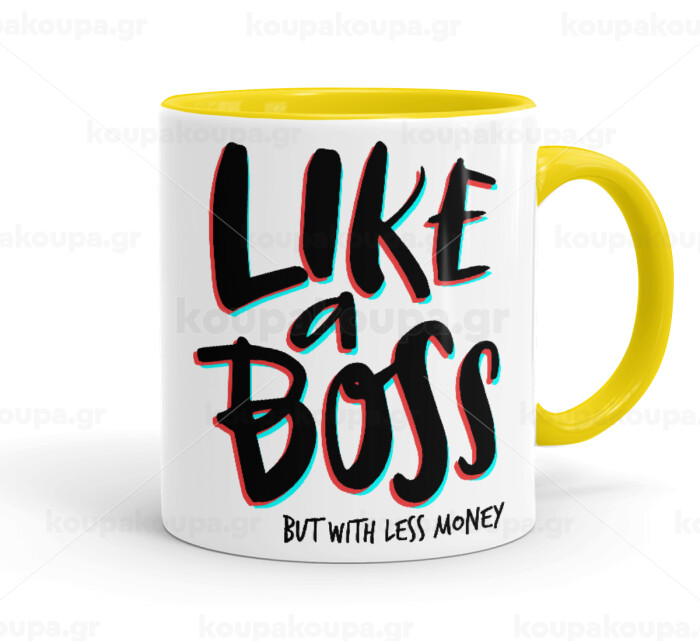 Like a boss, but with less money!!!, Mug colored yellow, ceramic, 330ml