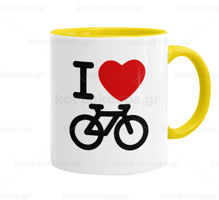 I love Bike, Mug colored yellow, ceramic, 330ml