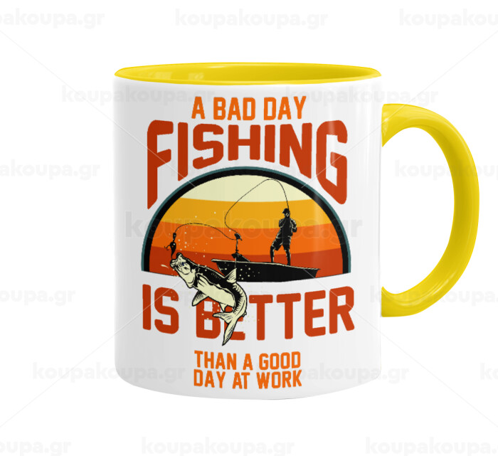 A bad day FISHING is better than a good day at work, Mug colored yellow, ceramic, 330ml