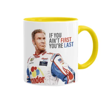 If You Ain't First You're Last Ricky Bobby, Talladega Nights, Mug colored yellow, ceramic, 330ml