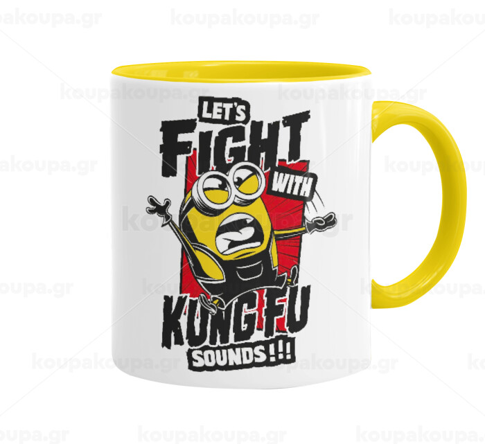 Minions Let's fight with kung fu sounds, Mug colored yellow, ceramic, 330ml