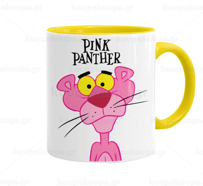 Pink Panther cartoon, Mug colored yellow, ceramic, 330ml