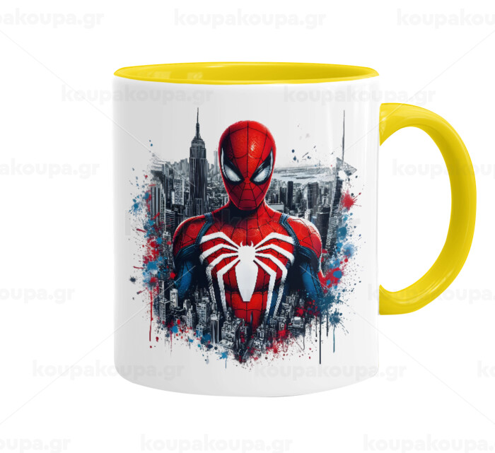 Spiderman City, Mug colored yellow, ceramic, 330ml