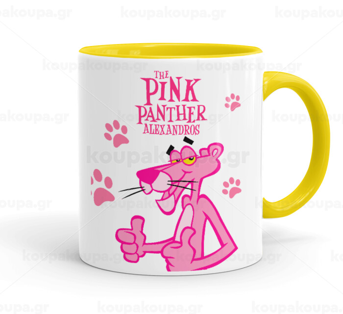 The pink panther, Mug colored yellow, ceramic, 330ml
