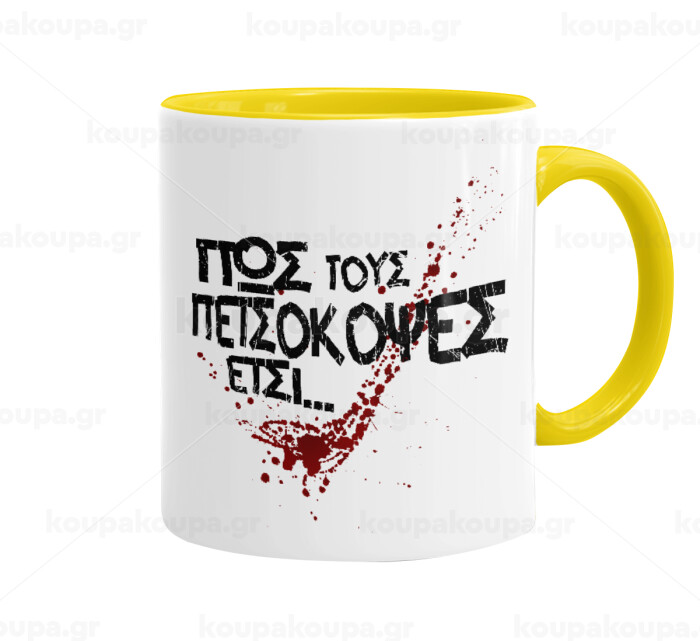 Πως τους πετσόκοψες έτσι..., Mug colored yellow, ceramic, 330ml