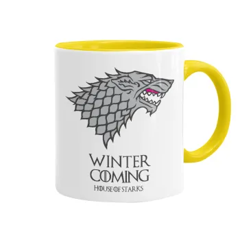 GOT House of Starks, winter coming, Mug colored yellow, ceramic, 330ml