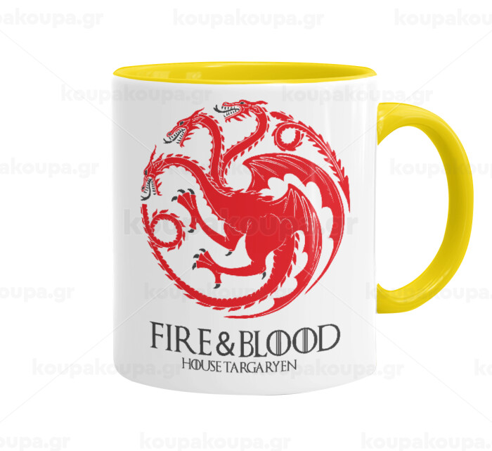 GOT House Targaryen, Fire Blood, Mug colored yellow, ceramic, 330ml