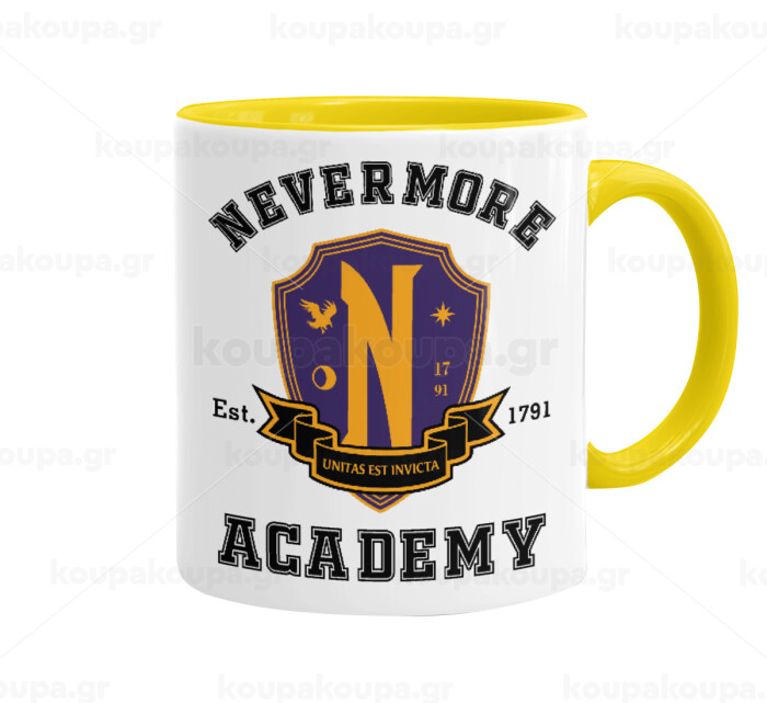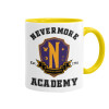 Wednesday Nevermore Academy University, Mug colored yellow, ceramic, 330ml