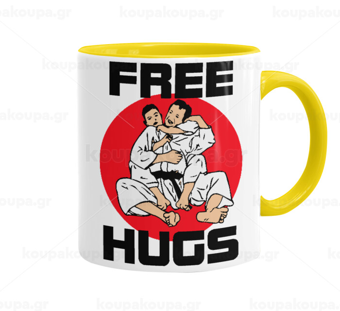 JUDO free hugs, Mug colored yellow, ceramic, 330ml