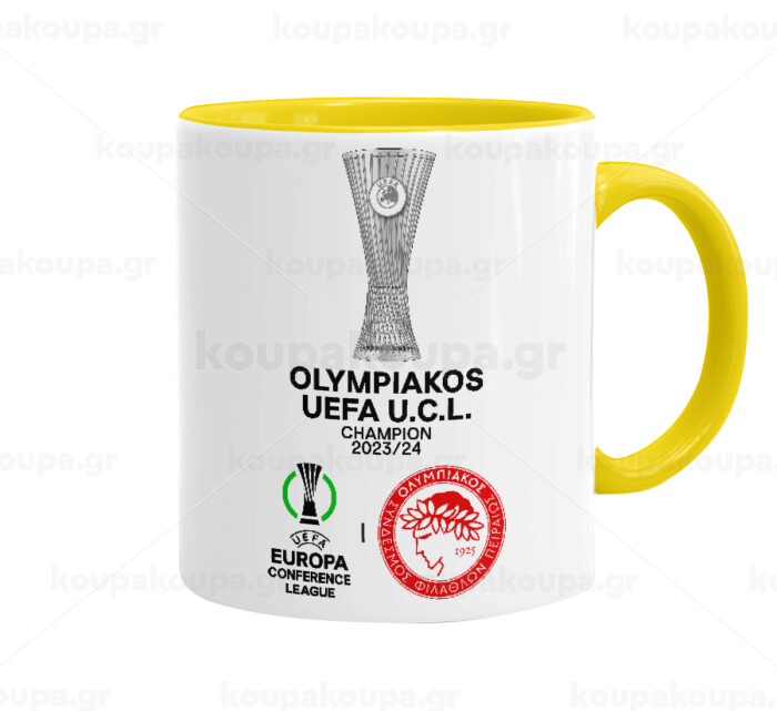 Olympiacos UEFA Europa Conference League Champion 2023/24, Mug colored yellow, ceramic, 330ml