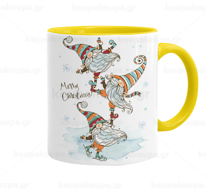 Christmas nordic gnomes, Mug colored yellow, ceramic, 330ml