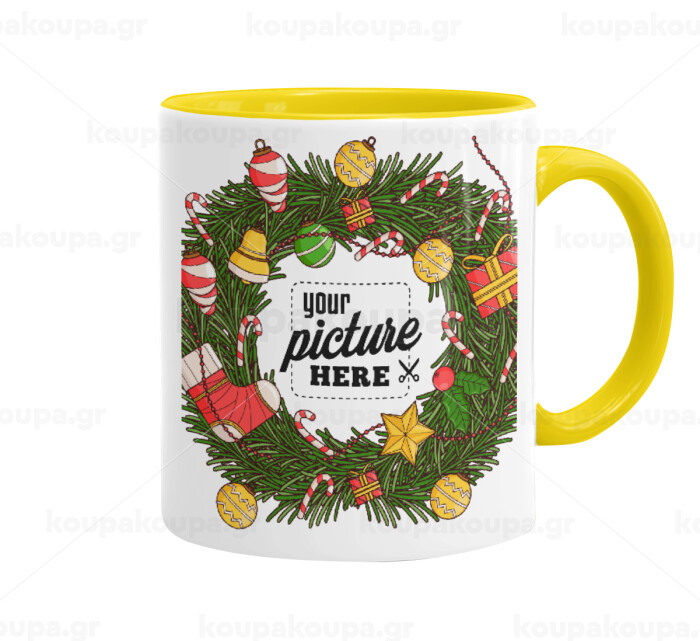 PHOTO Christmas twitch, Mug colored yellow, ceramic, 330ml
