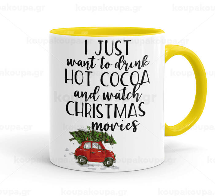 I just want to drink hot cocoa and watch christmas movies mini cooper, Mug colored yellow, ceramic, 330ml