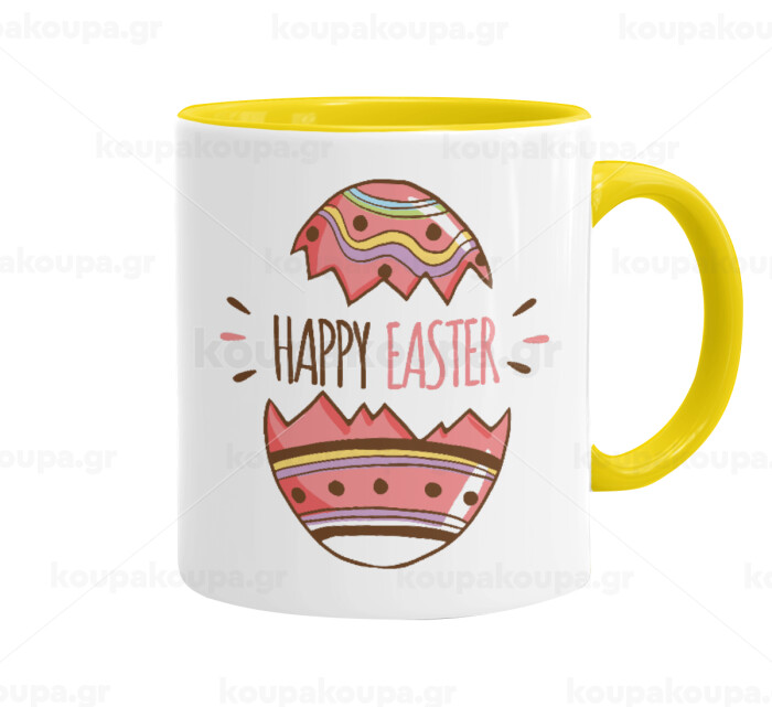 Happy easter egg, Mug colored yellow, ceramic, 330ml