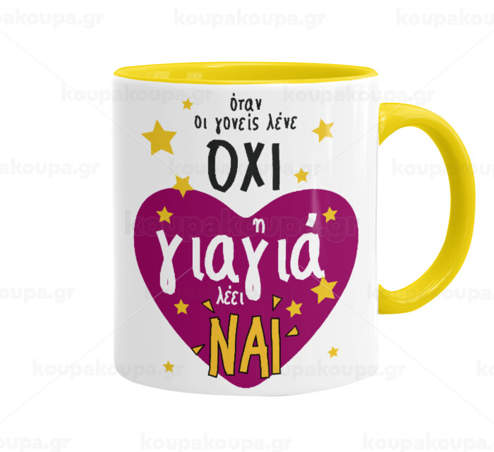 Όταν οι γονείς λένε ΟΧΙ, η γιαγιά λέει ΝΑΙ, Mug colored yellow, ceramic, 330ml