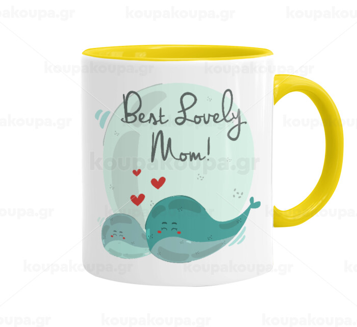 Mothers Day, whales, Mug colored yellow, ceramic, 330ml
