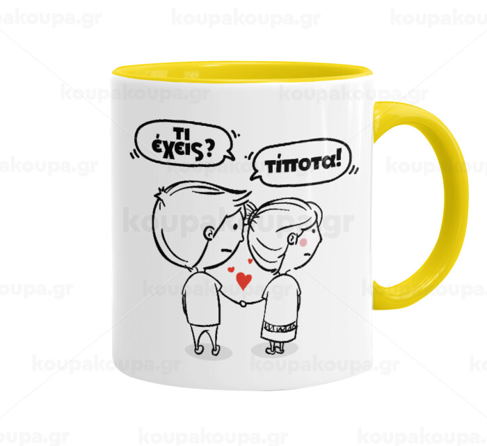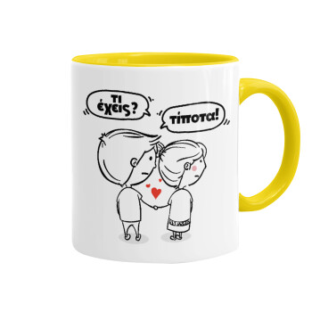 Τι έχεις? Τίποτα!, Mug colored yellow, ceramic, 330ml