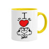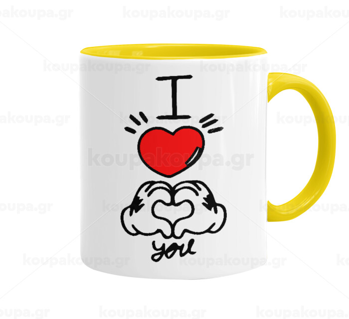 comics hands love, Mug colored yellow, ceramic, 330ml