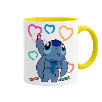 Lilo & Stitch painting, Mug colored yellow, ceramic, 330ml