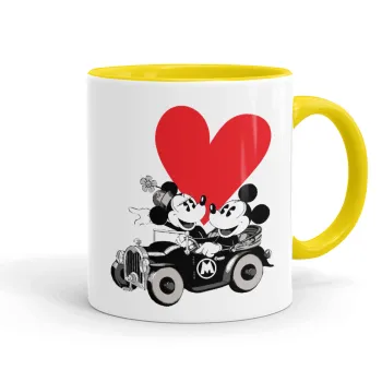 Mickey & Minnie love car, Mug colored yellow, ceramic, 330ml